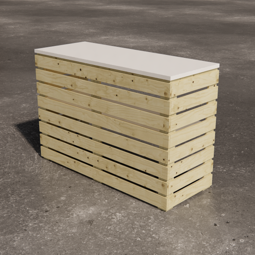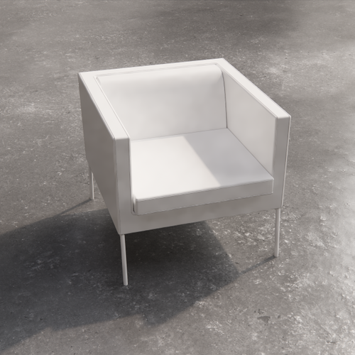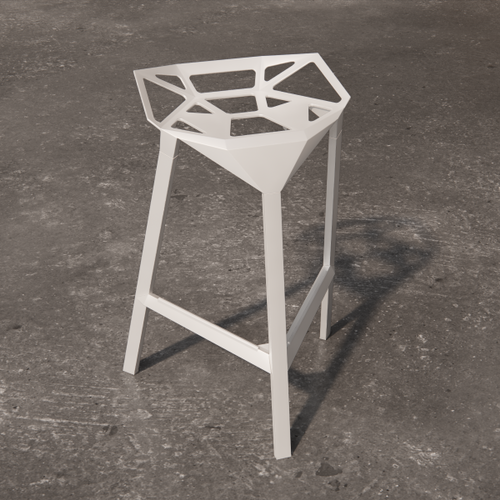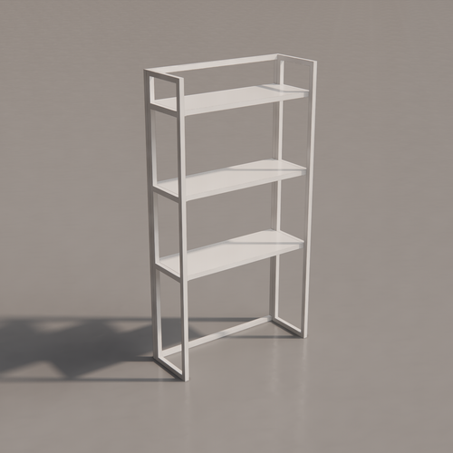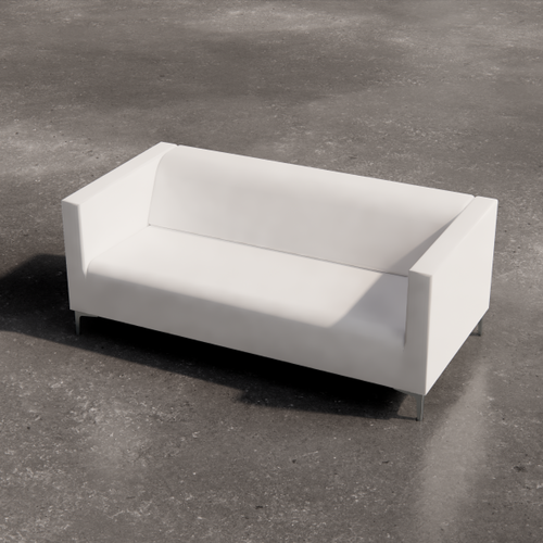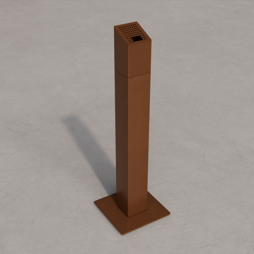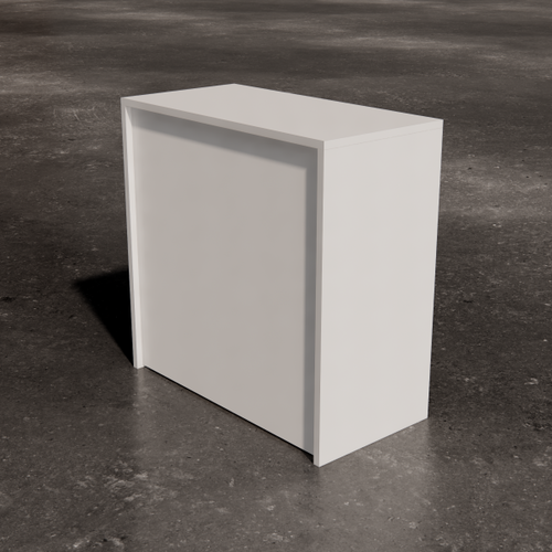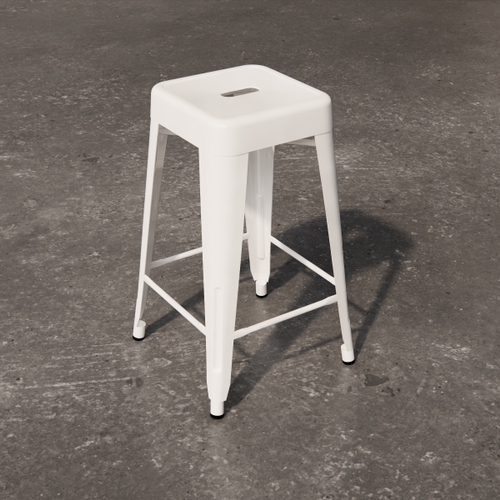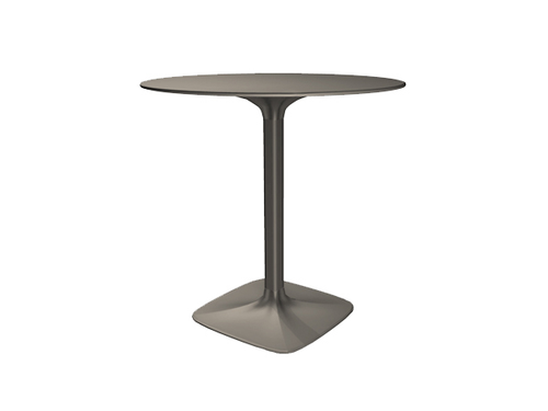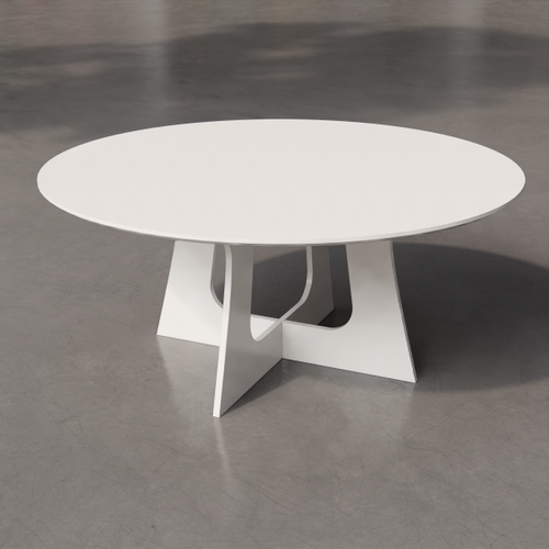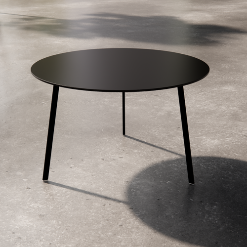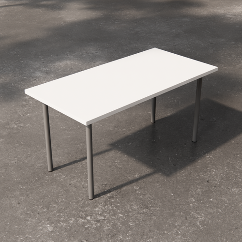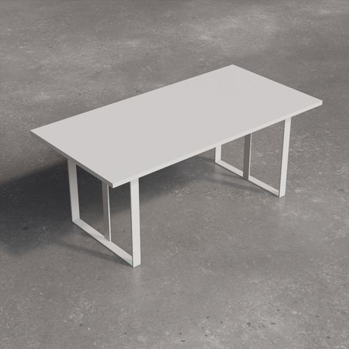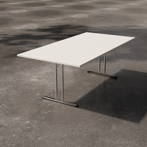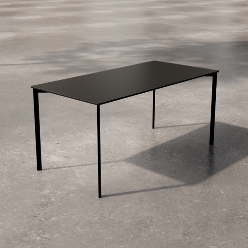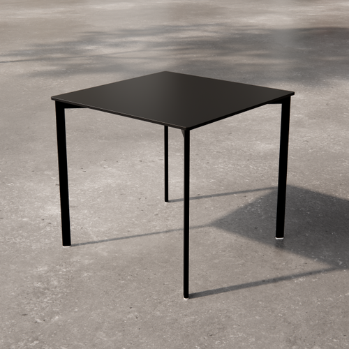 Low square table with painted laminate top. The supporting structure is a cross-section tubular with a square section.